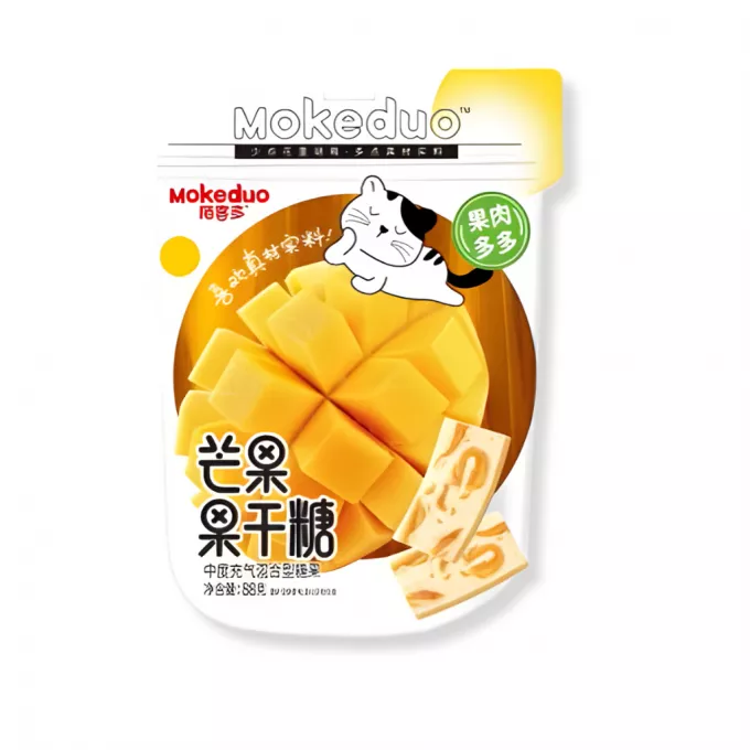 Sestavine: ječmenov sirup, sladkor, sušeni mango (mango, sladkor, ječmenov sirup, sredstvo kislosti:E330, konzervans:E223, jedilna aroma), užitno rastlinsko olje, polnomastno MLEKO v prahu, maščoba, maltodekstrin, želirno sredstvo:E441, jedilna aroma.